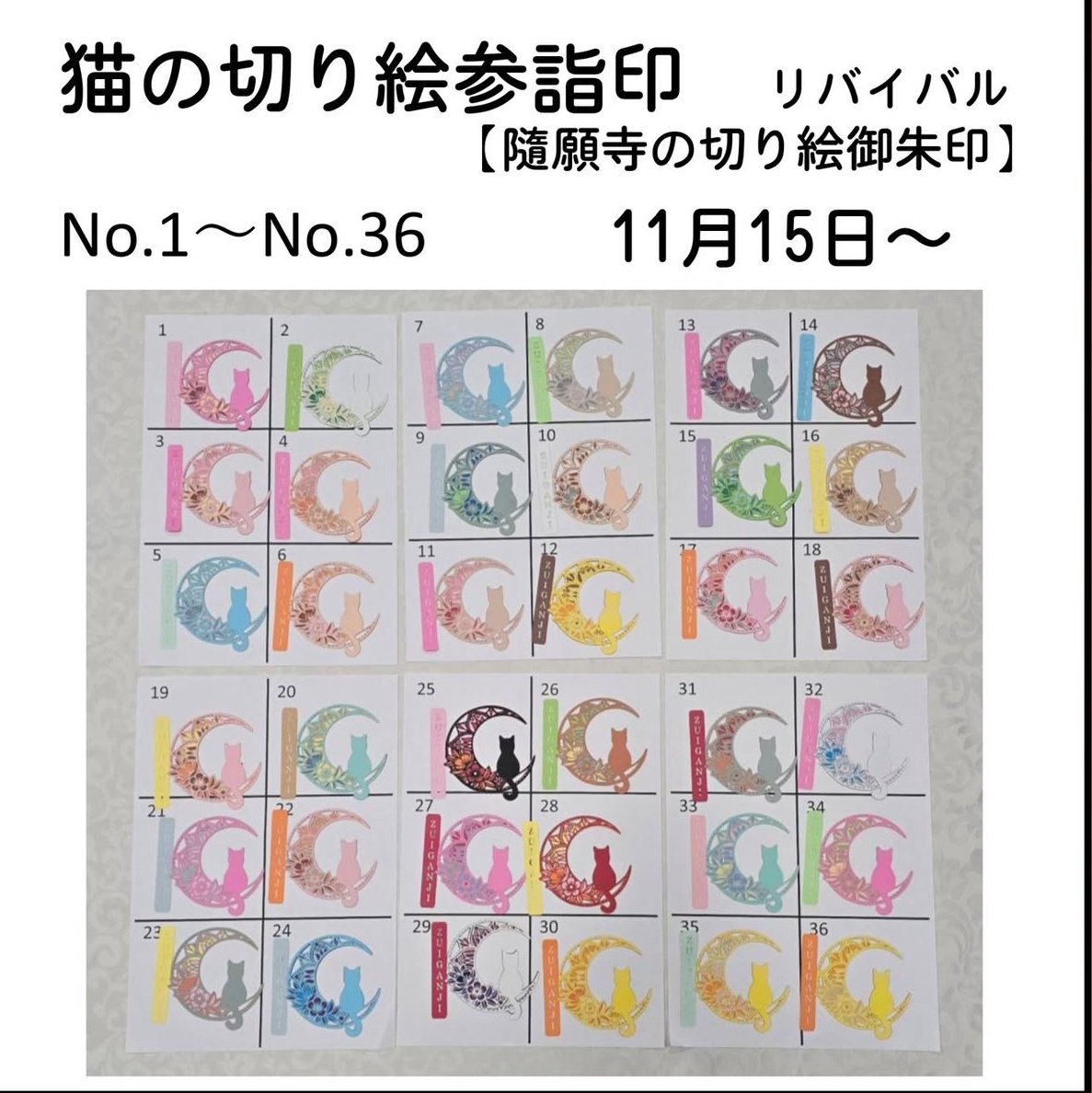 11月預購-猫の切り絵参詣印(72色)第一彈1-36