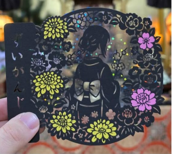 冬の切り絵「冬の女性(ホログラムの背景 ver)」-和服