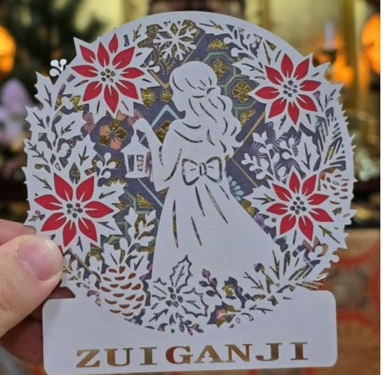 冬の切り絵「冬の女性(ホログラムの背景 ver)」-裙仔