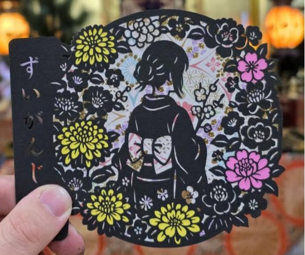 冬の切り絵「冬の女性(和紙背景ver)」-黑色和服